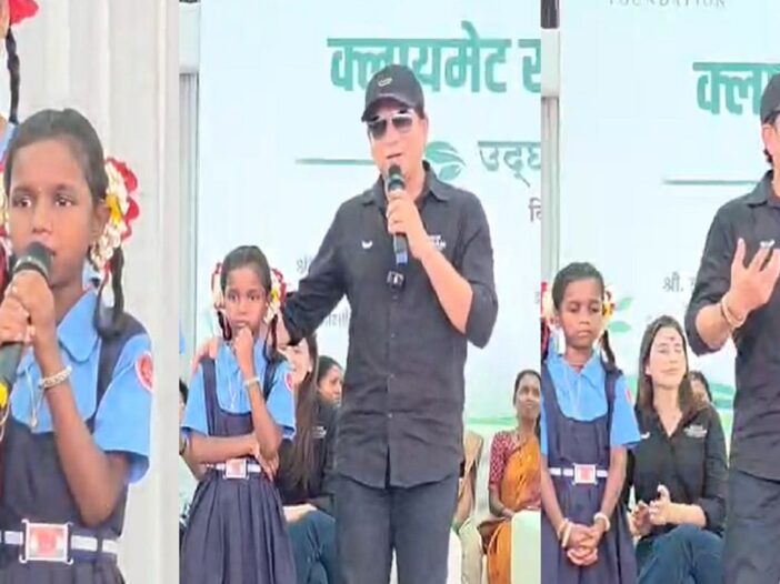 यावेळी सचिनच्या व्यासपीठावरील भाषणाआधी एका चिमुकल्या आदिवासी विद्यार्थिनीने भाषण केलं असून या भाषणानंतर सचिन तेंडुलकरने या चिमुकल्या विद्यार्थिनीला मिठी मारत तिचं तोंड भरून कौतुक केलं. रिद्धी असं या मुलीचं नाव आहे.. असं म्हणत सचिन यांनी तिचं कौतुक केलं.
