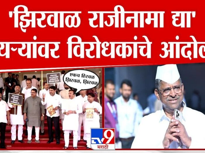 महाराष्ट्र विधानभवनाच्या पायऱ्यांवर विरोधकांनी भ्रष्टाचाराच्या मुद्द्यावरून तीव्र आंदोलन केले. त्यांनी नरहरी झिरवळ यांच्या राजीनाम्याची मागणी केली. विरोधकांनी भ्रष्टाचारी मंत्र्यांना पाठीशी घालणाऱ्या सरकारचा जोरदार निषेध केला. यावेळी धिक्कार असो, धिक्कार असो आणि भ्रष्टाचारी मंत्र्यांचा राजीनामा झालाच पाहिजे अशा घोषणांनी परिसर दणाणून गेला.