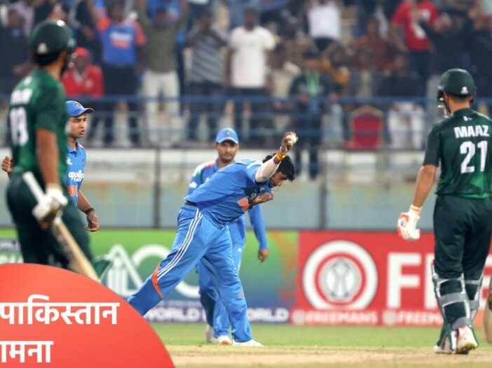 अंडर 19 वनडे वर्ल्डकप स्पर्धेतील साखळी फेरीच्या शेवटच्या सामन्यात भारत न्यूझीलंड हे संघ आमनेसामने आले होते. या सामन्यात भारताने न्यूझीलंडचा 7 गडी राखून पराभव केला आणि पाकिस्तानशी सामना करणार यावर शिक्कामोर्तब केलं. भारत आणि पाकिस्तान यांच्यात 1 फेब्रुवारीला सामना होणार आहे. कारण ब आणि क गटातील प्रत्येकी 3 संघांनी सुपर सिक्स फेरीत एन्ट्री घेतली आहे. यात ब गटातून भारत, बांग्लादेश, न्यूझीलंड आणि क गटातून झिम्बाब्बे, पाकिस्तान आणि इंग्लंडने एन्ट्री मारली आहे. असं असलं तर या गटात एक गणित होतं. भारताने न्यूझीलंडविरुद्धचा सामना गमावला असता तर पाकिस्तानशी लढत झाली नसती. पण हा सामना जिंकला आणि पाकिस्तानविरुद्ध सामना होणार हे ठरलं. त्यामुळे क्रीडारसिकांना पुन्हा एकदा हायव्होल्टेज सामना पाहायला मिळणार आहे. या सामन्यात नो हँड शेक पॉलिशी कायम असेल यात काही शंका नाही.