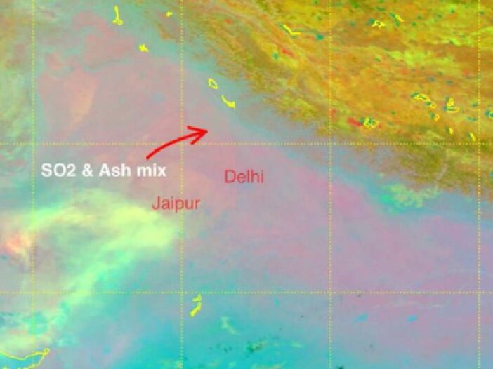 देशावर मोठं संकट आलं असून थेट अनेक विमाने रद्द करण्याची वेळ प्रशासनावर आली. रात्री 11 वाजण्याच्या सुमारास इथिओपियाच्या हेले गुब्बी ज्वालामुखीच्या उद्रेकामुळे निर्माण झालेल्या राखेचा मोठा ढीग दिल्लीत आणि देशात पोहोचला. पहिल्यांदाच राजस्थान आणि त्यानंतर दिल्ली असे करून राखेचा ढीग पुढे पुढे सरकताना देशात दिसतोय. यामुळे वातावरणात मोठा बदल झाला असून धूळ दिसत आहे. भारतीय हवामान विभागाच्या अंदाजानुसार, अंधूक ढग दिसतील आणि ढगाळ वातावरण दिसेल. हे राखेचे ढग लाल समुद्र ओलांडून ताशी 130 किलोमीटर वेगाने भारताकडे सरकत होते. भारताच्या जाैधपुर आणि जैसलमेरमध्ये हे ढग पोहोचले आणि त्यानंतर दिल्लीच्या दिशेने पुढे सरकत होते.