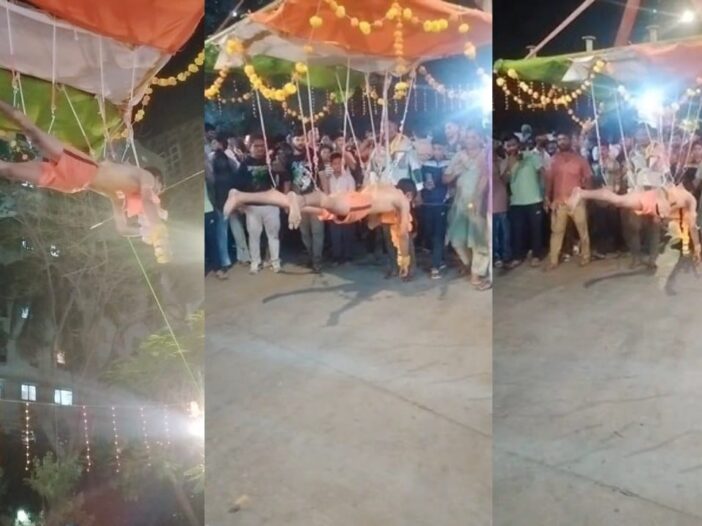 देवीच्या मिरवणूकीत शरीरात हुक घुसवून नवसासाठी क्रेनला लटकणाऱ्या तरुणा विरोधात मालाड पोलिसांनी अंधश्रद्धा निर्मुलन कायद्याने गुन्हा दाखल करण्यात आला आहे. १५ तारखेला मुंबईतील मालाड येथे श्री मुथू मरियम्मन देवीची मिरवणूक काढण्यात आली होती. ज्यामध्ये एका तरुणाने आपली इच्छा पूर्ण करण्यासाठी आपल्या संपूर्ण शरीराला हुक लावून क्रेनच्या साहाय्याने लटकून या मिरवणुकीत सहभाग घेतला होता. त्यामुळे त्याच्या जीवालाही धोका निर्माण झाला होता. मालाड पोलिसांनी अंधश्रद्धा आणि नरबळी यांसारख्या गंभीर आरोपांखाली एफआयआर दाखल केला आहे.
