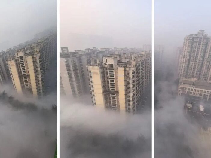 उत्तर प्रदेशातील ग्रेटर नोएडा वेस्ट येथील गौड सिटी सोसायटीत सकाळी अद्भूत नजारा लोकांना पाहायवास मिळाला आहे. संपूर्ण परिसरात दाट धुक्याच्या दुलईत हरवलेला दिसत आहे. या सोसायटीत रहाणाऱ्या एका रहिवाशाने त्याच्या टॉवरच्या २३ व्या माळ्यावर त्यांच्या कॅमेऱ्यात हे नयनरम्य दृश्य चित्रित केले असून ते आता सोशल मीडियावर व्हायरल होत आहे.
