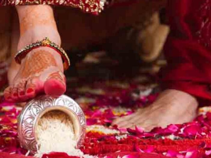 सध्या लग्नसराईचा हंगाम सुरु आहे. हिंदू धर्मात विवाह म्हणजे केवळ दोन व्यक्तींचे मिलन नसून अनेक अर्थपूर्ण परंपरांचा सोहळा असतो. हिंदू विवाह संस्कारांमध्ये गृहप्रवेश हा सर्वात महत्त्वाचा आणि भावनिक क्षण असतो. या विधीदरम्यान नववधू तांदळाचा कलश ओलांडते आणि घरात प्रवेश करते.