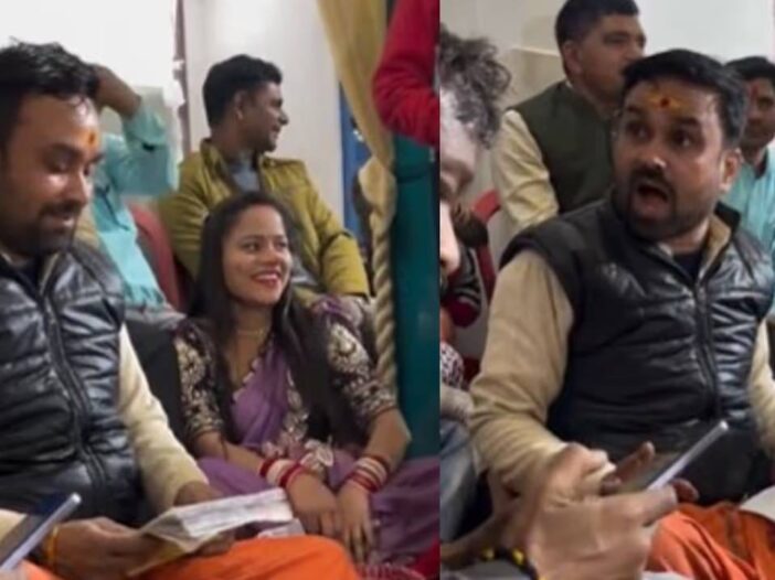 या व्हिडीओमध्ये पंडित म्हणताना दिसत आहेत की, मुलाचं स्थान आईवडिलांच्या चरणी आणि पत्नीचं स्थान त्याच्या हृदयात असतं. त्यामुळे दोघांपैकी तो कोणालाच सोडू शकत नाही. हीच गोष्ट समजावून सांगताना ते पुढे चक्क ‘निळ्या ड्रम’चं उदाहरण देतात, जे ऐकून सुरुवातीला सर्वजण चकीत होतात, परंतु विनोद समजल्यावर ते हसू लागतात. पंडित म्हणतात, “पती आईवडिलांना आणि पत्नीलाही सोडू शकत नाही. मग त्याला निळ्या ड्रममध्ये जावं लागलं तरी चालेल. पण त्याने दोघांची साथ निभावली पाहिजे.”