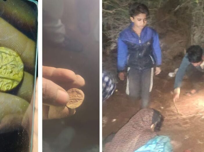 मध्य प्रदेशच्या छतरपूर जिल्ह्यात एक अनाकलनीय घटना उघडकीस आली आहे. दि ओबेरॉय राजगड पॅलेसच्या जवळ बांधकाम सुरु असताना मातीत अचानक सोन्याची नाणी सापडली आहेत. पावसाच्या पाणी पडताच ही नाणी लखलखू लागली. ही बातमी वाऱ्यासारखी पसरताच गावकऱ्यांनी रातोरात खोदकाम सुरु केले. माहीती मिळताच पोलिसांनी घटनास्थळी धाव घेतली. खोदकामा दरम्यान आपल्या पाचशे वर्षी जुनी सोन्याची नाणी सापडली आहेत असा दावा गावकऱ्यांनी केला. याचे काही व्हिडीओ सोशल मीडियावर व्हायरल होत आहेत.