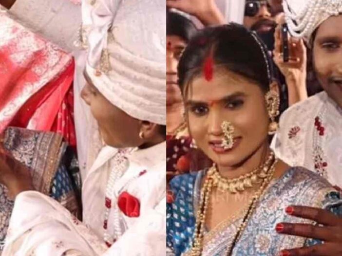 सूरजच्या पत्नीचे नाव संजना असे आहे. सूरज आणि संजना या दोघांचे प्रत्यक्ष लग्नमंडपातील काही फोटो समोर आले आहेत. या फोटोंमध्ये सूरज चव्हाण फारच आनंदी असल्याचे दिसतोय. सोबतच संजनादेखील हसत असलेली पाहायला मिळत आहे.