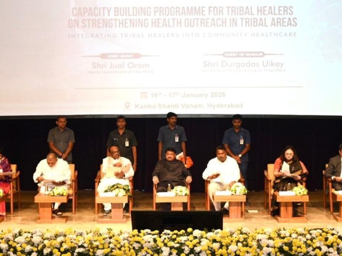 हैदराबाद, तेलंगणा | 16 जानेवारी 2026: भारत सरकारचे आदिवासी कार्य मंत्रालय (MoTA) यांनी 16 जानेवारी 2026 रोजी हैदराबाद येथील कान्हा शांती वनम् येथे ‘आदिवासी क्षेत्रांतील आरोग्य पोहोच मजबूत करण्यासाठी आदिवासी वैद्यांसाठी क्षमता वृद्धी कार्यक्रम’ आयोजित केला. हा कार्यक्रम आदिवासी वैद्यांना भारताच्या सार्वजनिक आरोग्य व्यवस्थेत सहकारी भागीदार म्हणून औपचारिक मान्यता देणारा, देशातील पहिलाच ऐतिहासिक राष्ट्रीय उपक्रम ठरला. माननीय पंतप्रधानांच्या विकसित भारत या दृष्टीकोनाशी सुसंगत असा हा उपक्रम समावेशक, शेवटच्या टप्प्यापर्यंत पोहोचणाऱ्या आणि समुदाय-नेतृत्वाखालील विकासावर आधारित आहे.
