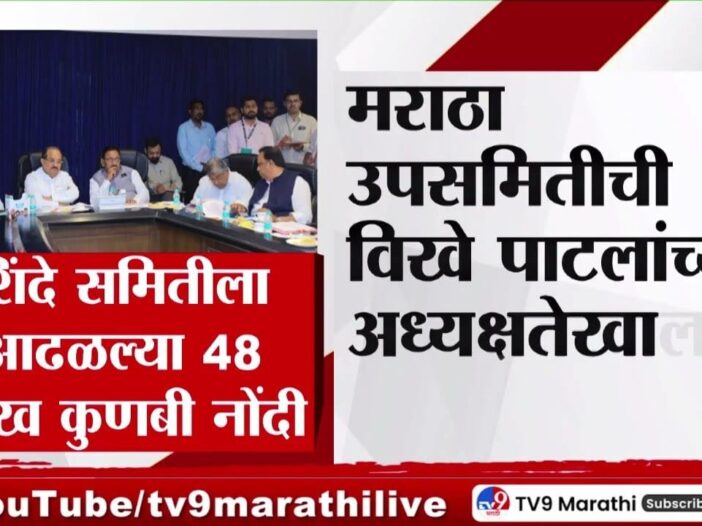 मराठा उपसमितीची विखे पाटलांच्या अध्यक्षतेखाली मुंबईत एक महत्त्वपूर्ण बैठक पार पडली. या बैठकीत मराठा आरक्षणासंदर्भात अनेक महत्त्वाच्या मुद्द्यांवर चर्चा करण्यात आली. शिंदे समितीने केलेल्या कामाचा आढावा यावेळी घेण्यात आला. शिंदे समितीला आतापर्यंत 48 लाख कुणबी नोंदी आढळल्या आहेत, असे या बैठकीत नमूद करण्यात आले.