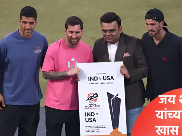 दिल्लीच्या अरूण जेटली मैदानात त्याच्या सन्मानार्थ एका कार्यक्रमाचं आयोजन केलं होतं. यावेळी मैदान त्याच्या चाहत्यांनी खचाखच भरलं होतं. यावेळी आयसीसीचे प्रमुख जय शाह यांनी हजेरी लावली. तसेच मेस्सीला काही खास गिफ्ट दिले. यात टी20 वर्ल्डकपच आमंत्रण दिलं गेलं. यात भारत युएसएचं तिकीट आहे. (PHOTO CREDIT- PTI)