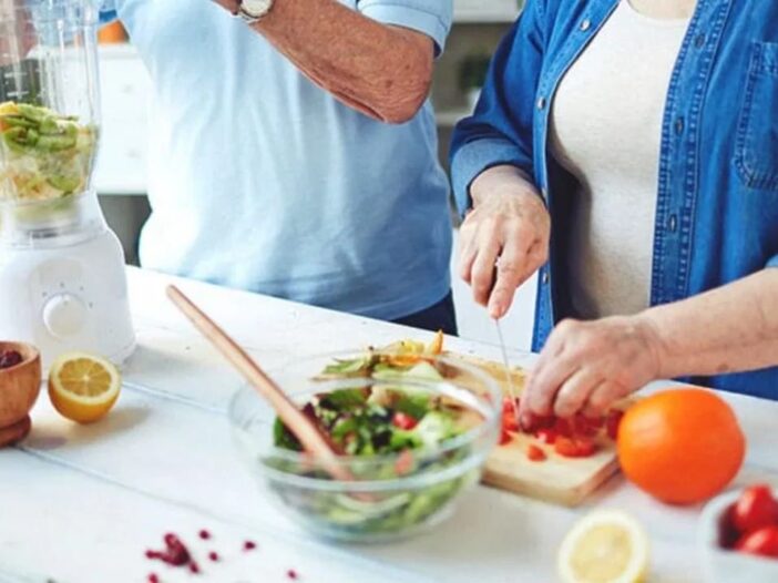भाजीपाला, फळे, संपूर्ण धान्य, ओट्स, ज्वारी, बाजरी, भाजीपाला यामुळे पचन सुधारते आणि बद्धकोष्ठता टाळता येते. हिरव्या पालेभाज्यांमधून लोह, फोलेट आणि अँटिऑक्सिडंट्स मिळतात, जे रक्तनिर्मिती आणि रोगप्रतिकारक शक्तीसाठी उपयुक्त असतात. साखर, मीठ आणि तेलाचे प्रमाण मर्यादित ठेवावे, कारण या वयात मधुमेह, रक्तदाब आणि हृदयविकाराचा धोका वाढतो. तळलेले, प्रक्रिया केलेले आणि फास्ट फूड टाळणे आरोग्यासाठी फायदेशीर ठरते. पुरेसे पाणी पिणे हा निरोगी आहाराचा महत्त्वाचा भाग आहे. तहान न लागली तरी नियमित अंतराने पाणी प्यावे.