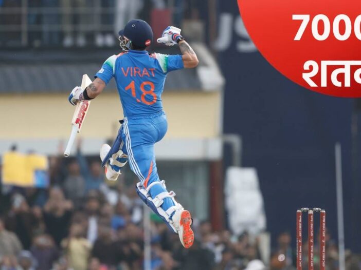 विराट कोहलीने आंतरराष्ट्रीय क्रिकेटमधील हे 7000 वं शतक आहे. आतापर्यंत आंतरराष्ट्रीय क्रिकेटमध्ये सर्व खेळाडूंच्या शतकांचा आकडा मोजला तर एकूण 7 हजार शतकं झाली आहेत. त्यामुळे विराट कोहलीचं हे शतक खास आहे. (Photo- BCCI Twitter)