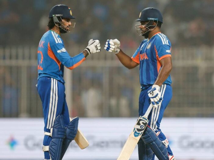 संजू सॅमसनने या सामन्यात नाबाद 97 धावांची खेळी केली आणि टीम इंडियाला विजय मिळवून दिला. या कामगिरीसाठी त्याला सामनावीराच्या पुरस्काराने गौरविण्यात आलं. इतकंच काय तर त्याने काही विक्रमही आपल्या नावावर केला. असाच एक आगळावेगळा विक्रम त्याने नोंदवला आहे. (Photo- BCCI Twitter)