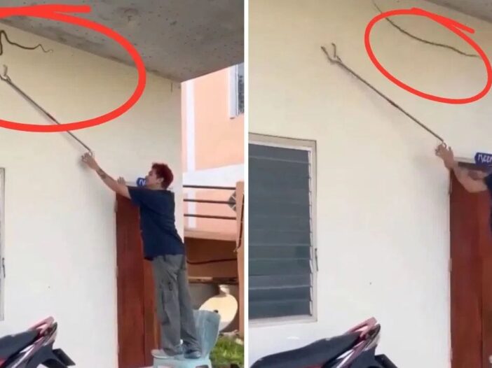 सोशल मीडियावर सापांच्या रेस्क्यू व्हिडीओ ( Snake Rescue Video ) नेहमीच व्हायरल होत असतो. परंतू अलिकडे समोर आलेला एक व्हिडीओ पाहून तुमचा थरकाप उडेल. एका स्नेक कॅचरचा ( सर्पमित्र ) एक व्हिडीओ व्हायरल आहे. या व्हायरल व्हिडीओत एका सापाची सुटका करीत असताना भिंतीवर चढलेल्या या सापाने अचानक हवेत झेप घेतली. ही झेप पाहून साप पकडणाऱ्याची अवस्था काय झाली असेल हे वेगळे सांगायला नको. व्हायरल क्लिपला पाहून अनेक युजरने आपल्या प्रतिक्रीया व्यक्त केल्या आहेत.