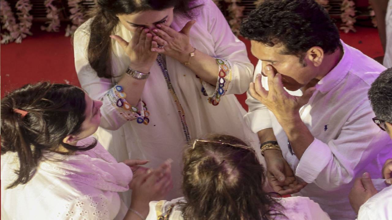 सचिनने आशा भोसले यांना पुष्पहार अर्पण केला, त्यांना नमन केले. तेव्हा तो खूप भावूक झालेला दिसत होता, त्याला अश्रू अनावर झाले. . त्याची पत्नी अंजलीनेही आशाताईंना श्रद्धांजली वाहिली.