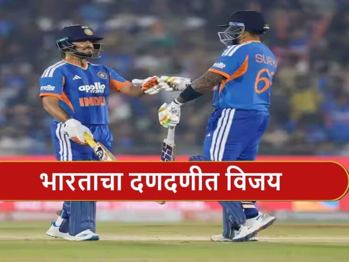 टीम इंडियाने न्यूझीलंड विरूद्धच्या 5 सामन्यांच्या टी 20I मालिकेत विजयी घोडदौड सुरुच ठेवली आहे. भारताने नागपूरनंतर रायपूरमध्येही न्यूझीलंडचा धुव्वा उडवला आहे. भारताने रायपूरमधील शहीद वीर नारायण सिंह आंतरराष्ट्रीय क्रिकेट स्टेडियममध्ये न्यूझीलंडचा 7 विकेट्सने धुव्वा उडवला आहे. न्यूझीलंडने भारतासमोर 209 धावांचं आव्हान ठेवलं होतं. भारताची या विजयी धावांचा पाठलाग करताना सलामी जोडी अपयशी ठरली. संजू सॅमसन 6 धावांवर बाद झाला. तर अभिषेक शर्मा याला भोपळाही फोडता आला नव्हता. मात्र त्यानंतरही भारताने हा सामना 16 व्या ओव्हरमध्येच जिंकला. कॅप्टन सूर्यकुमार यादव, इशान किशन आणि शिवम दुबे या तिघांनी बॅटिंगने भारताच्या विजयात प्रमुख भूमिका बजावली.