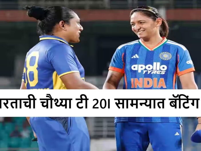 टीम इंडियाने चौथ्या सामन्यासाठी प्लेइंग ईलेव्हनमध्ये एकूण 2 बदल केले आहेत. जेमीमाह रॉड्रिग्स हीला आजारामुळे बाहेर व्हावं लागलं आहे. तर क्रांती गौड हीला विश्रांती देण्यात आली आहे. जेमीमाह आणि क्रांती यांच्या जागी हर्लीन देओल आणि अरुधंती रेड्डी यांचा समावेश करण्यात आला आहे. तर दुसऱ्या बाजूला श्रीलंकेनेही प्लेइंग ईलेव्हनमध्ये 2 बदल केले आहेत. काव्या कविंदी आणि रश्मिका शिववंडी या दोघींचा प्लेइंग ईलेव्हनमध्ये समावेश करण्यात आला आहे.