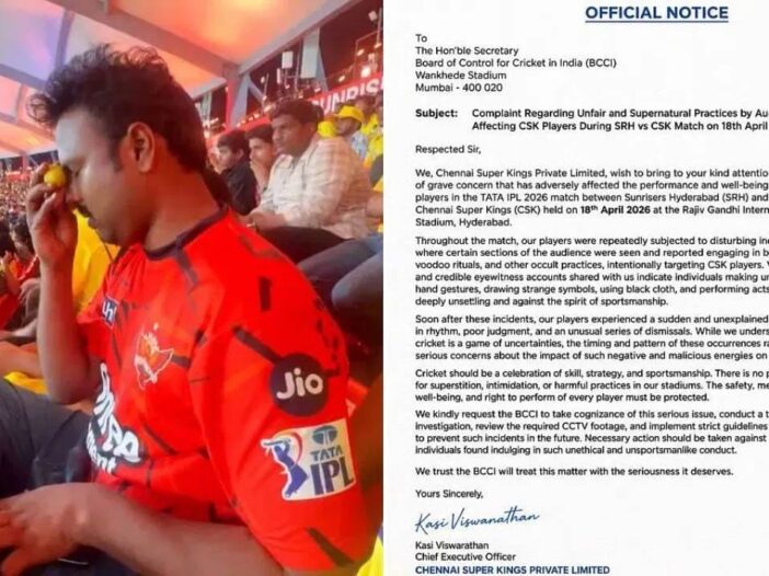 आयपीएल 2026 स्पर्धेची रंगत वाढली आहे. प्रत्येक टॉप 4 मध्ये राहण्यासाठी लढत देत आहेत. दुसरीकडे, चाहतेही आपल्या संघाला प्रोत्साहन देण्यासाठी प्रयत्नशील आहेत. काही जण मैदानात उपस्थित राहून, काही जण सोशल मीडियावरून, तर काही जण वेगवेगळ्या माध्यमांचा वापर करून संघाला प्रोत्साहन देत आहेत. पण चेन्नई सुपर किंग्स आणि सनरायझर्स हैदराबाद सामन्यात एक वेगळंच चित्र पाहायला मिळालं. या सामन्यातील एक व्हिडीओ सध्या सोशल मीडियावर चर्चेत आहे. स्टेडियममध्ये आपला संघ जिंकावा म्हणून काळी जादू केल्याचा एक व्हिडीओ सध्या सोशल मीडियावर सर्वांचं लक्ष वेधून घेत आहे. त्यानंतर आणखी एक पत्र सोशल मीडियावर व्हायरल होत आहे. त्यात बीसीसीआयकडे तक्रार केल्याचं दिसत आहे. पण यापैकी नेमकं काय खरं आणि काय खोटं यावरून एक वेगळी चर्चा रंगली आहे. कारण सोशल मीडियावर जे काही असतं ते सगळं खरं असतं असं नाही.