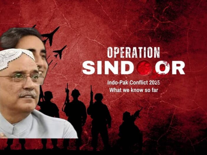 ऑपरेशन सिंदूरविषयी राष्ट्रपती आसिफ अली झरदारीय यांनी जाहीर कबुलीनामा दिला. पाकिस्तानमधील एका कार्यक्रमात त्यांनी याविषयीचे वक्तव्य केले. ते म्हणाले की एक प्रतिनिधी माझ्याकडे आला आणि त्याने सांगितले की दोन्ही देशात संघर्ष सुरू झाला आहे. पण मी चार दिवस अगोदरपासूनच सांगितले होते की दोन्ही देशात मोठा संघर्ष होणार आहे. त्यामुळे मला भारत कारवाई करणार याची जाणीव असल्याचे त्यांनी सांगितले.