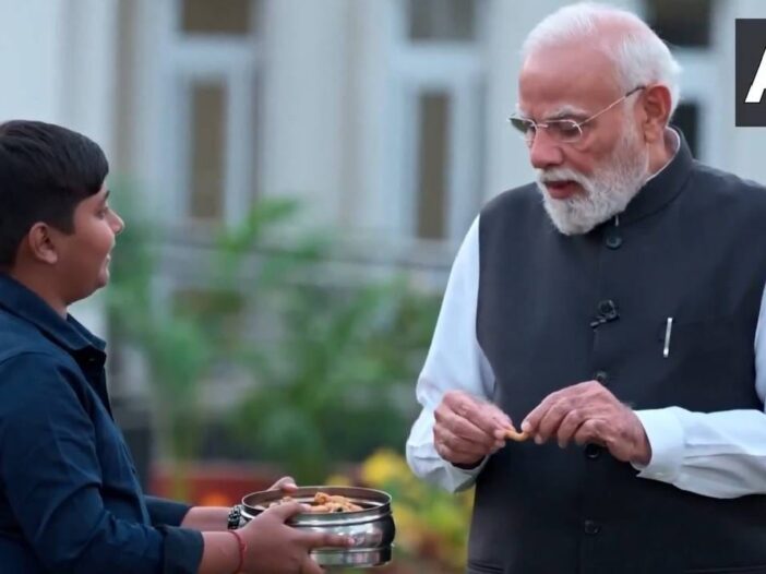 #WATCH | PM Narendra Modi shares traditional Chhattisgarh snacks Thethri and Khurmi with students during 2nd episode of the 9th edition of ‘Pariksha pe Charcha’.