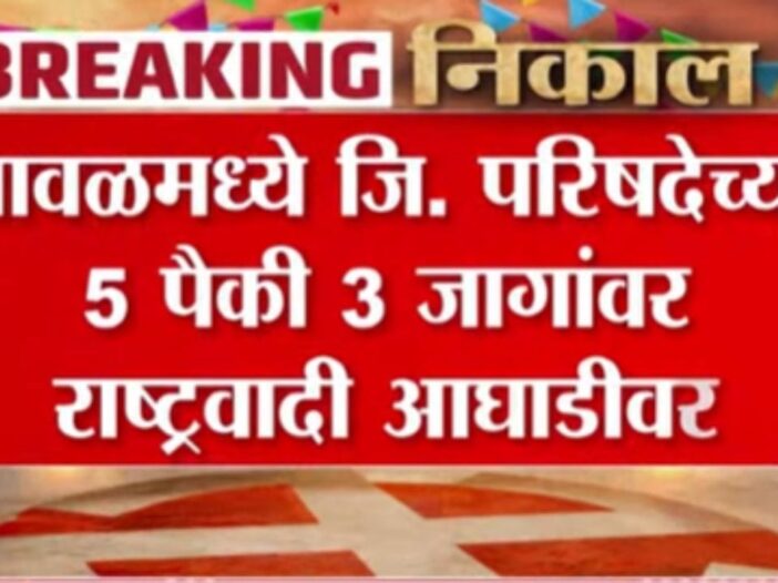 पुणे जिल्ह्याच्या मावळ तालुक्यात झालेल्या जिल्हा परिषद निवडणुकीच्या ताज्या कलांमध्ये राष्ट्रवादी काँग्रेसने ५ पैकी ३ जागांवर आघाडी घेतली आहे. तर उर्वरित २ जागांवर भाजपने आघाडी घेतल्याचे दिसून येत आहे. संपूर्ण पुणे जिल्ह्याचा विचार करता, राष्ट्रवादी काँग्रेस सध्या आघाडीवर असल्याचे चित्र आहे.
