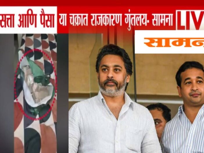 महाराष्ट्राचे राजकारण सध्या सत्तेतून पैसा आणि पैशातून सत्ता या चक्रात अडकले असल्याचा घणाघात सामना मुखपत्रातून करण्यात आला आहे. सिंधुदुर्ग जिल्ह्यात राणे बंधूंमध्ये निवडणुकीतील पैशांच्या कथित वापरावरून राजकीय वॉर भडकले आहे. निलेश राणेंनी भाजप कार्यकर्त्यांच्या घरी छापा टाकून लाखोंची रोकड जप्त केल्याचा दावा केला, तर नितेश राणेंनी ती व्यवसायाची रक्कम असल्याचे स्पष्टीकरण दिले.