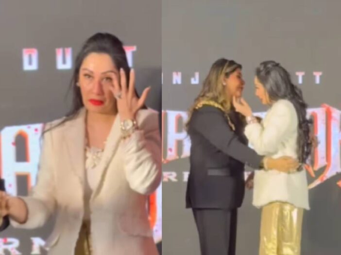 मान्यता आपले अश्रू थांबवू शकली नाही. चित्रपटाच्या इवेंटमध्ये ती सर्वांसमोर रडली. सोशल मीडियावर मान्यता रडल्याचे व्हिडिओ व्हायरल होत आहेत. त्यात ती डोळे पुसताना दिसतेय. संजय पत्नीला संभाळताना दिसतो.