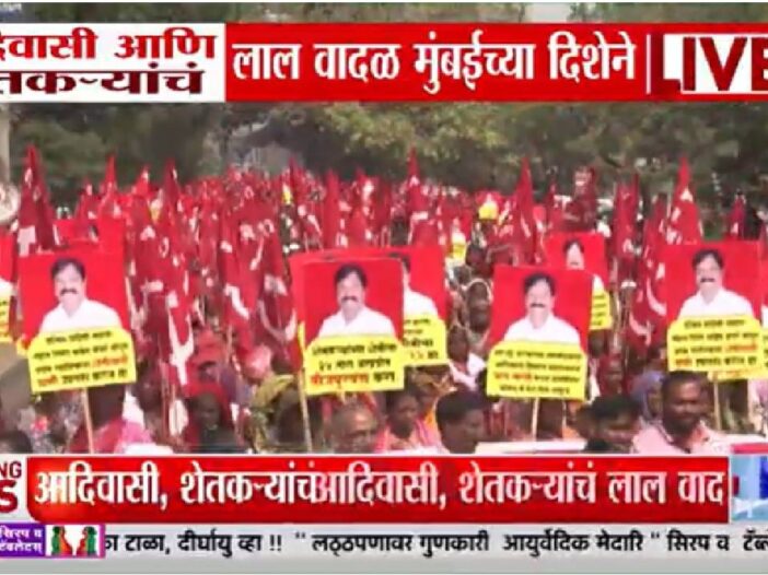 नाशिक जिल्ह्यातील हजारो आदिवासी आणि शेतकऱ्यांकडून विविध प्रलंबित मागण्यांसाठी लाँग मार्च मोर्चा काढण्यात आला होता. दिंडोरीच्या तहसील कार्यालयासमोर हे आंदोलन सुरु होतं, मात्र मागण्या पूर्ण झाल्या नाहीत. म्हणून थेट मंत्रालयावर धडकण्याची भूमिका ह्या मोर्चाने घेतली आहे. किसान सभा आणि मापकचे शेतकरी शेतमजुरांचा लाँग मार्च थेट मुंबईच्या दिशेने निघाला आहे. माजी आमदार जे. पी. गावीत्यांच्या नेतृत्वात मुंबईच्या दिशेने लाल वादळ कूच करत आहे. हातात लाल झेंडे, पायी चालत, राज्यसरकारच्या विरोधात घोषणाबाजी करत हे वादळ मुंबईकडे येण्यास निघालं आहे.
