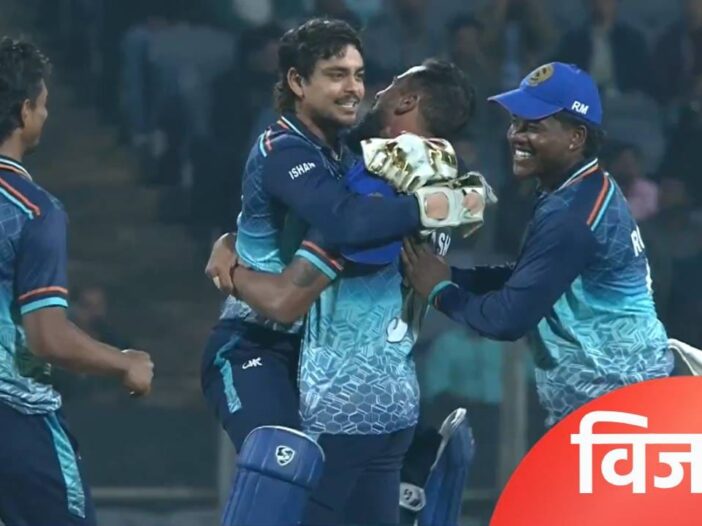 सय्यद मुश्ताक अली ट्रॉफी 2025 स्पर्धेच्या अंतिम फेरीत झारखंड आणि हरियाणा हे संघ आमनेसामने आले होते. या सामन्यात नाणेफेकीचा कौल हरियाणाच्या बाजूने लागला आणि त्यांनी प्रथम गोलंदाजी स्वीकारली. पण हा निर्णय चुकला असंच म्हणावं लागेल. झारखंडने प्रथम फलंदाजी करत 3 विकेट गमवून 20 षटकात 262 धावा केल्या आणि विजयासाठी 263 धावांचं आव्हान दिलं. हे आव्हान काही हरियाणाला गाठता आलं नाही. हा सामना झारखंडने 69 धावांनी जिंकला आणि जेतेपदावर नाव कोरलं. या विजयात मोलाचा हातभार लावला तो झारखंडचा कर्णधार इशान किशनने.. त्याच्या झंझावाती शतकामुळे झारखंडने 262 धावांपर्यंत मजल मारली. या धावांचा पाठलाग करताना हरियाणाचा डाव पत्त्यासारखा कोसळला. या धावांचा पाठलाग करताना धडाधड विकेट पडत गेल्या आणि जेतेपद वाळूसारखं हातातून निसटत गेलं. झारखंडने सय्यद मुश्ताक अली स्पर्धेचं जेतेपद पहिल्यांदा जिंकलं आहे.