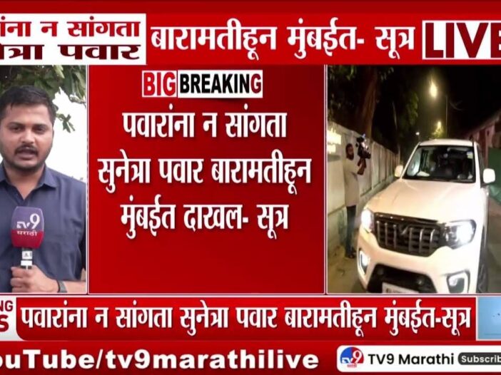 बारामतीहून मुंबईत दाखल झालेल्या सुनेत्रा पवार आज उपमुख्यमंत्रीपदाची शपथ घेणार आहेत. काल रात्री उशिरा सुनेत्रा पवार, जय पवार आणि पार्थ पवार यांच्यासह मुंबईत पोहोचले. सूत्रांनी दिलेल्या माहितीनुसार, त्यांनी बारामतीहून मुंबईकडे येताना शरद पवार किंवा कुटुंबातील इतर सदस्यांना याची कल्पना दिली नव्हती.