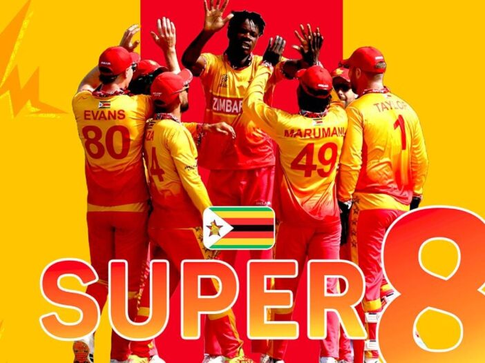 साखळी फेरीत आयर्लंडविरुद्धचा सामना पावसामुळे रद्द झाला आणि झिम्बाब्वेला सुपर 8 फेरीचं तिकीट मिळालं. झिम्बाब्वेच्या खात्यात 5 गुण झाले असून ऑस्ट्रेलियाला मागे टाकत सुपर 8 फेरीत जागा पक्की केली आहे. झिम्बाब्वेने पहिल्यांदाच टी20 वर्ल्डकप स्पर्धेच्या इतिहासात सुपर 8 फेरीत जागा मिळवली आहे. (Photo- Zimbabwe Cricket Twitter)