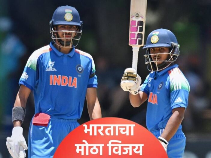 अंडर 19 वनडे वर्ल्डकप स्पर्धेच्या सुपर सिक्स फेरीत भारत आणि झिम्बाब्वे हे संघ आमनेसामने आले होते. या सामन्यात नाणेफेकीचा कौल हा झिम्बाब्वेच्या बाजूने लागला आणि प्रथम गोलंदाजी स्वीकारली. पण हा निर्णय चुकीचा ठरला. भारतीय फलंदाजांनी झिम्बाब्वेच्या गोलंदाजांना अक्षरश: सळो की पळो करून सोडलं. भारताने या सामन्यात 50 षटकांचा खेळ खेळला आणि 8 गडी गमवून 352 धावा केल्या. तसेच विजयासाठी 353 धावांचं आव्हान दिलं. हे आव्हान गाठणं काही झिम्बाब्वेला जमलं नाही आणि संपूर्ण संघ अवघ्या 148 धावांवर बाद झाला. हा सामना भारताने 204 धावांनी जिंकला. या विजयामुळे भारताचा उपांत्य फेरीतील दावा पक्का झाला आहे. कारण भारताच्या खात्यात फक्त दोन गुणच नाही तर मोठ्या फरकाने जिंकल्याने नेट रनरेटही सुधारला आहे. आता पाकिस्तानचं गणित यामुळे बिघडलं आहे.